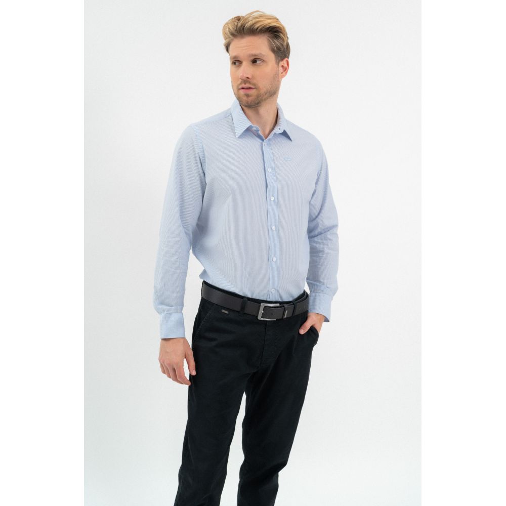 Ez a regular fit hosszú ujjú férfi ing klasszikus megjelenést és kényelmes viseletet kínál a mindennapokra. Az egyenes szabású fazon természetes illeszkedést biztosít, miközben megfelelő mozgásteret hagy. A modellt szövött címkés díszítés egészíti ki.